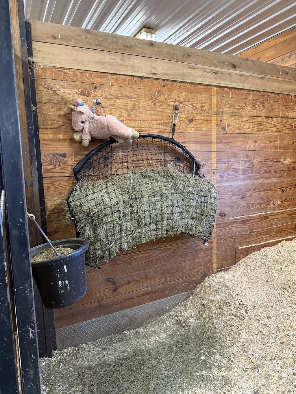 Please use caution when there are horned animals, animals with ear tags, or horses with shoes, blankets, buckles or halters. When using a hanging net, ensure it's high enough that a horse cannot paw at it.